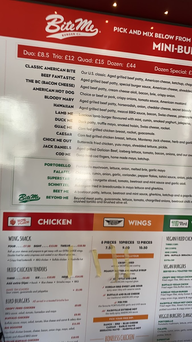 Welcome to Bite Me Burger, a gem nestled in Camden that redefines casual dining with a quirky twist. Located at 72/73 Chalk Farm Rd, this vibrant eatery specializes in delicious, bite-sized burgers that pack a powerful flavor punch. The menu features an impressive selection of mini burgers, including options for beef, chicken, lamb, and even vegan choices, making it perfect for any palate.